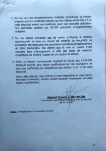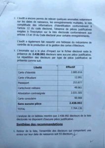 De même, les experts de la CEDEAO et l’OIF récusé par la CENI, parviennent à la même conclusion notamment le retrait pure et simple du fichier de 2.438.992 électeurs inscrits sans pièces justificatives. Ces inscriptions ne sont pas conformes aux dispositions des articles 13 et 19 du code électoral précise le rapport.