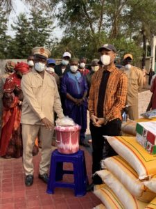 « Remise d’un important lot de kits de lavage et de vivres aux populations de Boffa grâce aux généreux de dons du président alpha condé et ressortissants. Ce sont 500 kits, 1250 bavettes, 40 tonnes de riz, 20 cartons de savons, 1050 kg de sucres, 240 litres d’huile et 12 cartons de tomates ».