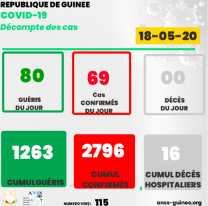 Selon l’ANSS, 69 nouveaux cas confirmés ont été enregistrés à la date du dimanche 17 mai, suite à des tests effectués sur un échantillon de 471 sujets.