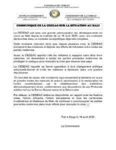 Merci de lire le communiqué de la CEDEAO: