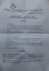 Cheick Tidiane Traoré n’est plus le sous-préfet de Kassa, il vient d’être débarquer par le ministre de l’administration du territoire le General Bourema Condé. Désormais c’est son adjoint Abou Samaké qui va assurer l’intérim. Pour le moment, on ignore les motifs du remplacement de Cheick Tidiane Traoré à la tête de la sous-préfecture de Kassa.