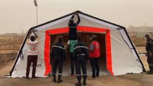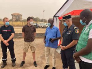 Dans le cadre de la riposte contre Ebola, les agents de la protection civile ont été formés au déploiement de plusieurs postes médicaux avancés projetables PMAP de prise en charge des patients atteints par Ebola, cet exercice est soutenu par la coopération française.