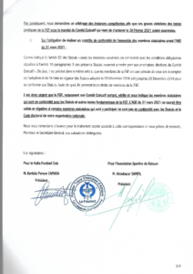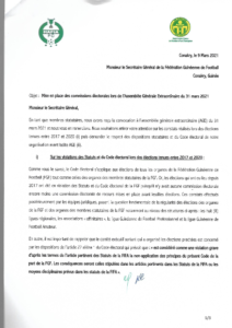Dans une correspondance adressée au secrétaire général de la Feguifoot, le candidat KPC et Bouba Sampil, le president de l’ASK exigent la mise en place deux commissions pour veiller à la régularité et la sincérité du congrès électif prévu le 31 mars prochain. Il s’agit de la commission électorale et de recours et celle de contrôle de conformité du statut des membres statutaires.