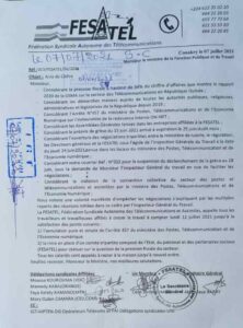Face à l’échec des négociations entre la FESATEL, le ministère des postes et des télécommunications, sous l’égide de l’inspection générale du travail, une grève sera déclenchée le 12 juillet prochain par la Fédération Syndicale Autonome des Télécommunications, a indiqué le syndicat dans un avis de grève publié mercredi soir au sortir d’une réunion des membres.