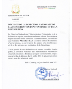 L’opposant Abdoulaye Bah, a été arrêté ce lundi et conduit à la maison centrale. Le ministère de la justice dans un communiqué évoque les rasions de son arrestation.