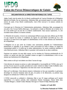 Tags: Renvoie d’Abdoulaye Bah en prison : l’UFDG condamne et accuse le pouvoir de déstabiliser le parti (déclaration)