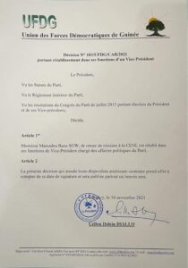 Ci-dessous la décision du président de l’UFDG :