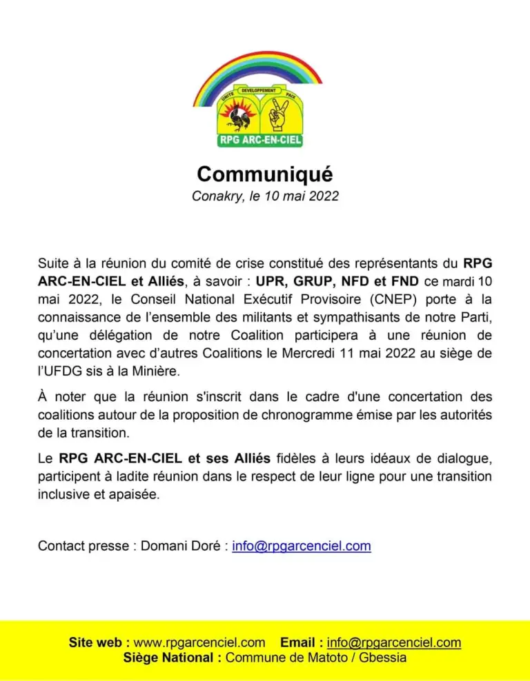 Du jamais vu en tout cas sous le règne de l’ancien président Alpha Condé, le RPG et ses alliés seront ce mercredi 11 mai 2022, au siège de l’UFDG, un parti farouchement oppose à leur gouvernance il y a quelques années. L’ancien parti au pouvoir, va assister à la plénière des partis politiques membres du G58, qui ont de profonds désaccords avec la junte militaire au pouvoir sur la conduite de la transition amorcée depuis le 5 septembre dernier en Guinée.
