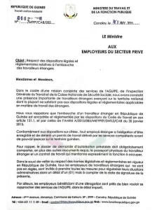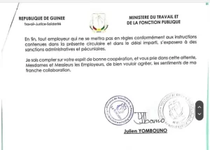 Ci-dessous la note circulaire du ministre du travail et de la fonction publique: