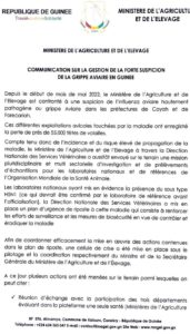 Et d’après un communiqué du ministère de l’agriculture et de l’élevage, publié ce lundi 23 mai 2022, qu’il a fait des prélèvements d’échantillons qui seront envoyés à l’étranger pour voir si la maladie ne s’apparente pas à la Grippe à Aviaire H5 qui s’attaque souvent aux volailles et autres animaux.