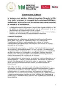 Ci-dessous le communiqué final signé entre les parties prenantes du Simandou: