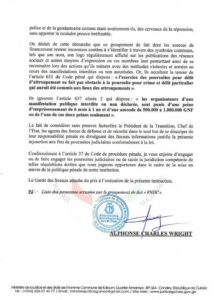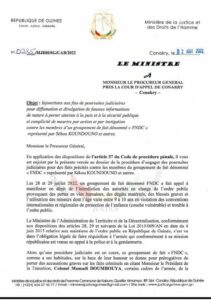 Charles Wright, le ministre de la justice et des droits de l’homme passe à la vitesse supérieure face aux responsables du FNDC, un mouvement qu’il qualifie d’illégal et dangereux pour la stabilité du pays. Et pour cause, Charles Wright, ordonne au procureur général d’engager des poursuites judiciaires contre Sékou Koundouno et plusieurs autres responsables du FNDC pour ‘’ diffamation et divulgation de fausses informations de nature à porter atteinte à la paix et à la sécurité publique et complicité de meurtre par action et par instigation’’.
