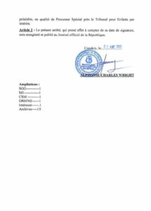 Ci-dessous l’arrêté du ministre Charles Wright :
