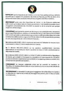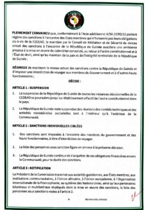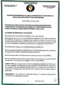 Le document signé par le président de la Guinée Bissau Umaro Sissoco Embalo, également président en exercice de l’organisation, mentionne que les sanctions imposées restent maintenues jusqu’au retour à l’ordre constitutionnel.