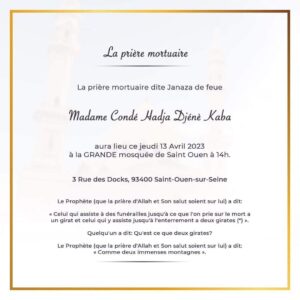 Tags: Dernière minute : la prière mortuaire de Hadja Djené Kaba prévue ce jeudi 13 avril en France