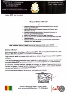 Dans le communiqué, le ministre Guillaume Hawing, invite tous les acteurs su système éducatif au respect stricte de cette date sur toute l’entendue du territoire nationale.