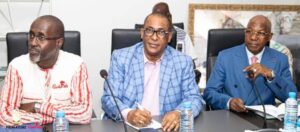 Conakry, le 23 octobre 2023 – Le Premier ministre, Chef du Gouvernement, Dr Bernard Goumou, en compagnie des ministres du Commerce, de l’Industrie et des PME, du Budget, des Transports et du Secrétaire général du ministère de la Pêche, a présidé une réunion avec les opérateurs économiques, le patronat et de la chambre du commerce et de l’industrie.