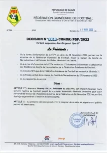 Dans la note de décision prise le 27 novembre dernier et rendue publie ce jeudi 30 novembre 2023, la présidente du CONOR reproche à Namory Sylla d’avoir « perturbé les travaux de l’Assemblée Générale de la fédération du 26 novembre 2023 et proféré des injures grossières à l’endroit de la présidente ».