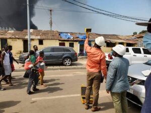 Cependant, le feu demeure encore par endroit mais les sapeurs-pompiers concentrent leurs efforts sur ces endroits précis pour contenir le feu qui à tout consumé sur le site pétrolier complément bouclier par les forces de l’ordre.