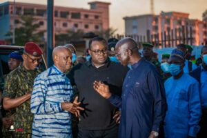 Conakry, le 18 décembre 2023 – À la suite des événements tragiques liés à l’incendie du grand dépôt de carburant à Kaloum, le Premier Ministre, accompagné des membres du gouvernement, des chefs de la hiérarchie militaire s’est rendu successivement au chevet des blessés hospitalisés au CHU Donka, à Ignace Deen et au quartier Coronthie.