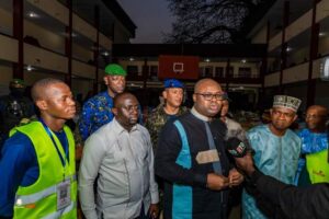 Conakry, le 23 décembre 2023– Le premier Ministre, Dr Bernard Goumou a assisté à la remise d’importants dons de vivres et de non-vivres aux victimes de l’incendie du dépôt de carburant de kaloum en présence, du Ministre d’Etat, ministre de la Sécurité et de la protection civile, du Chef d’Etat-major de la gendarmerie, de la gouverneure de la ville de Conakry et de certains membres du gouvernement.