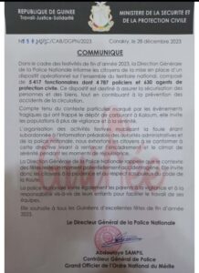 En prélude aux festivités de fin d’année où la mobilité des citoyens est intense, la direction générale de la police annonce dans un communiqué publié ce vendredi 29 décembre 2023, un dispositif de sécurité à la hauteur des attentes.