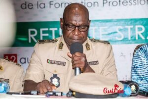 Au nom des populations de Kindia, M. le gouverneur, le Général 2ème section, 𝗔𝗯𝗼𝘂𝗯𝗮𝗰𝗮𝗿 𝗗𝗶𝗮𝗸𝗶𝘁é a souhaité la bienvenue à M. le Ministre et sa délégation avant de rappeler que l’Enseignement technique est « 𝘂𝗻 𝗺𝗮𝗶𝗹𝗹𝗼𝗻 𝗶𝗻𝗰𝗼𝗻𝘁𝗼𝘂𝗿𝗻𝗮𝗯𝗹𝗲 𝗱𝗮𝗻𝘀 𝗹𝗲 𝗱𝗲𝘃𝗲𝗹𝗼𝗽𝗽𝗲𝗺𝗲𝗻𝘁 𝘀𝗼𝗰𝗶𝗼-𝗲𝗰𝗼𝗻𝗼𝗺𝗶𝗾𝘂𝗲 𝗱𝘂 𝗽𝗮𝘆𝘀». Il a ensuite magnifié les résultats obtenus par M. le Ministre et ses cadres pour changer l’image de l’ETFP.