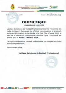 Cette reprise du championnat, fait suite à l’élimination du syli national de la CAN 2023, mentionne le communiqué.