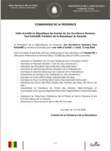 Selon un communiqué de la présidence, la venue à Conakry du président Rwandais s’inscrit dans le cadre d’une visite d’amitié.