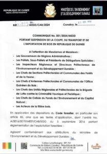 En Guinée, la coupe, le transport et l’importation du bois est suspendu jusqu’à nouvel ordre. La décision qui prend effet à compter de ce mercredi 05 juin 2024, a été prise par le ministère de l’environnement et du développement durable.