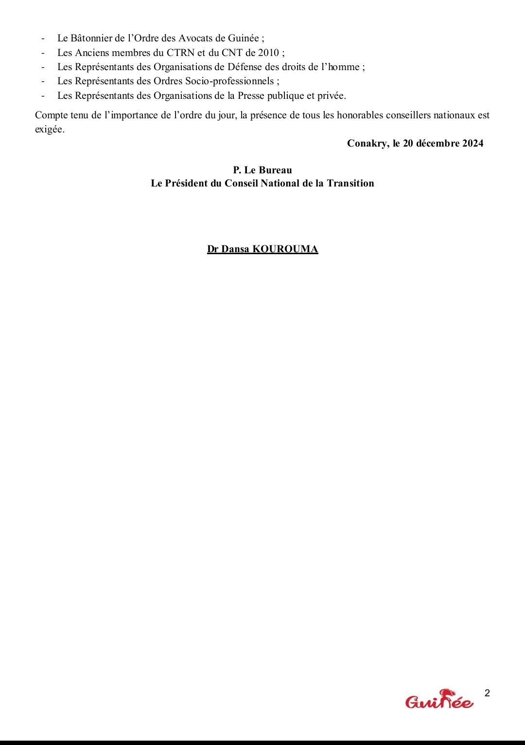 Après la présentation par le pool économique du gouvernement, de la loi de finances initiale 2025, suivi du passage des départements ministériels devant les commissions parlementaires du Conseil National de la Transition pour défendre leurs budgets, l’examen et l’adoption du volet recettes du (PLFI-2025) est prévus ce lundi 23 décembre 2024, à l’hémicycle du palais du peuple. C’est du moins le contenu du communiqué de Dr Dansa Kourouma, qui invite les conseillers nationaux à une plénière ce lundi à cet effet.