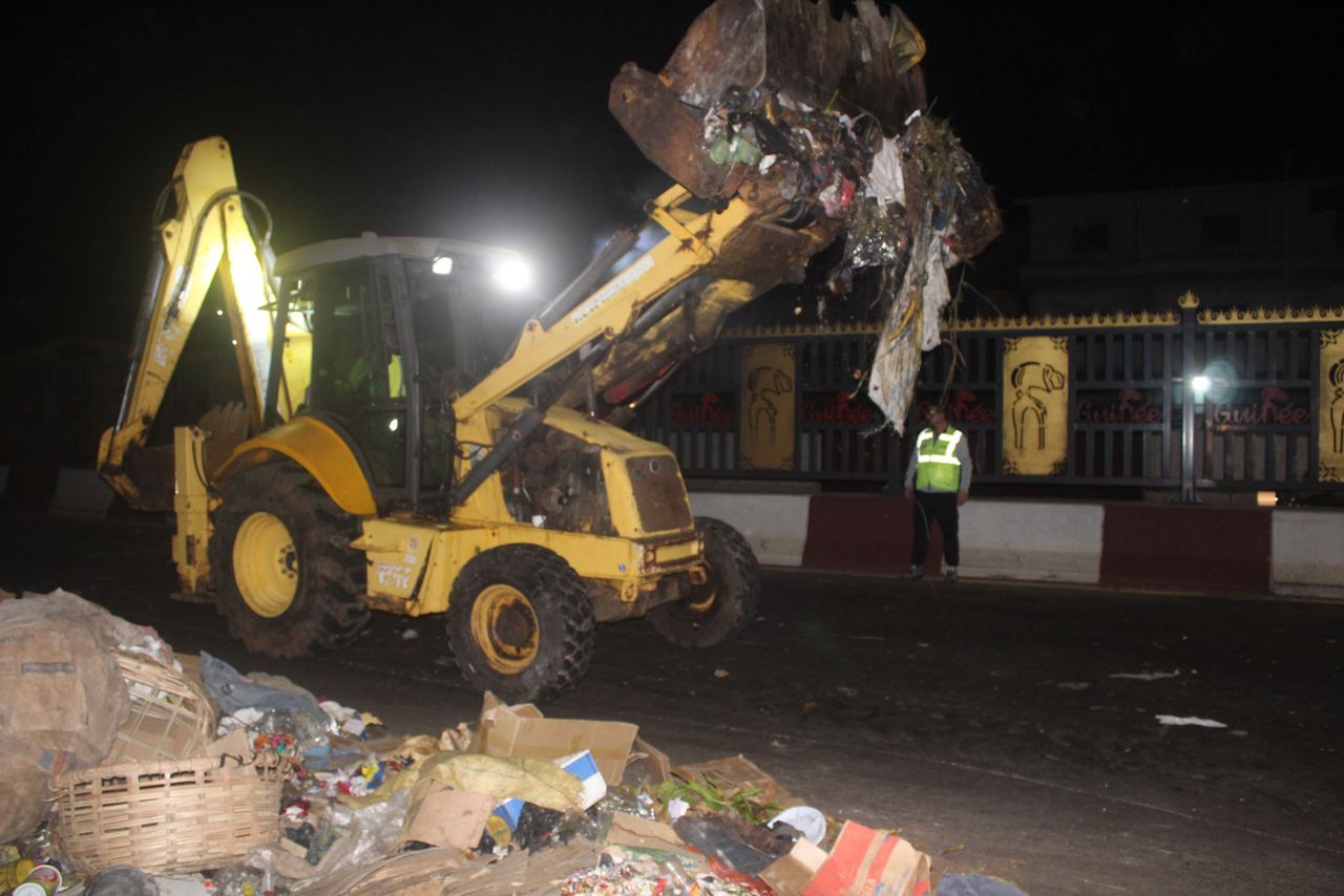 « On avait lancé une opération dénommée « ville propre 72 heures » pour le nettoyage de la ville de Conakry, mais en 24 heures, nous avions pu dégager toute la ville. Actuellement, nous sommes en train de maintenir la ville propre. Les gros tas qui étaient constitués au bord de la route ont tous été dégagés. Donc, actuellement, nous nous battons pour ne pas que le travail soit remis à zéro. C’est pourquoi, dans les 24 heures de chaque jour, nous faisons sortir des équipes qui roulent autour de la ville pour la rendre propre et maintenir les poubelles en bon état. Pour cette soirée, nous avons sur le tronçon cinq (5) tractopelles, dix (10) camions Actros, des bennes, treize (13) camions-bennes tasseuses qui font le tour de la ville. Cinquante (50) travailleurs sont en train de se battre pour rendre la ville propre », a-t-il déclaré.