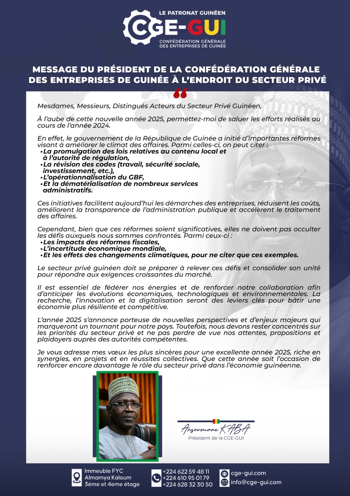 Vœux du Nouvel An 2025 : Voici le message d’Ansoumane Kaba, président de la (CGE-GUI)