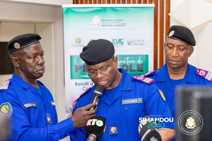 La cérémonie de signature qui s’est déroulée à l’hôtel Noom de Conakry, a enregistré la présence d’une délégation gouvernementale composée de Monsieur Mourana Soumah, ministre de l’économie et des finances, son homologue du Budget, Monsieur Facinet Sylla, des Présidents des chambres consulaires nationales, les responsables des douanes, des opérateurs économiques ainsi que de nombreuses personnalités.