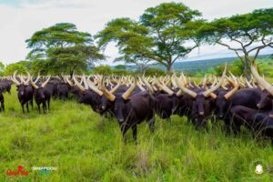 C’est à bord de son véhicule personnel, que le Président Kagame a conduit son hôte et frère le Président Mamadi DOUMBOUYA pour une visite de sa ferme située dans le District de Bugesera, à une heure de route de Kigali. C’est dans cette vaste exploitation agricole, symbole d’innovation et de résilience, que les deux chefs d’État en compagnie de leurs épouses ont passé en revue des autruches et un cheptel impressionnant de vaches laitières appelées Inyambo. Ces vaches, connues pour leurs majestueuses cornes et leur prestance, occupent une place centrale dans la culture rwandaise, où elles représentent la richesse suprême, bien au-delà de la terre ou de l’argent.