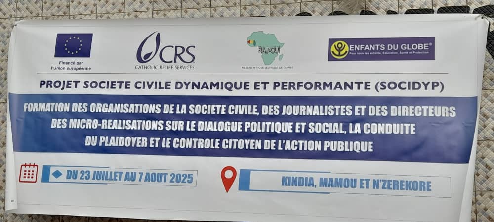 Renforcer son implication dans le dialogue politique et social, la conduite du plaidoyer et le contrôle citoyen de l’action, ce sont là les thématiques qui feront objet de débats durant cet atelier de Kindia mis en œuvre par Catholic Relief Service (CRS), le Réseau Afrique Jeunesse Guinée (RAJGUI) et l’ONG Enfant du Globe.