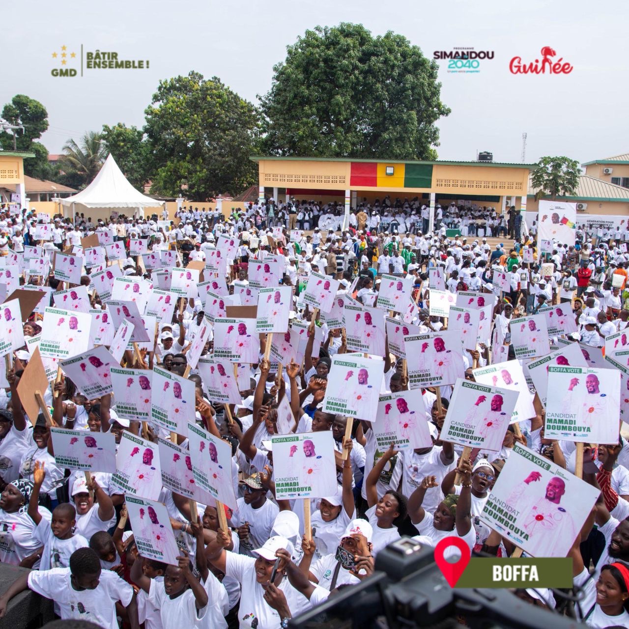 « En effet depuis le début de cette période de refondation de notre pays, Boffa a connu des transformations majeures, visibles, concrètes, et ressenties par chacun de nous dans le domaine des infrastructures administratives, la réhabilitation et l’extension de la résidence du Préfet, La construction du camp d’infanterie, la gendarmerie, la douane, la police et la marine qui offre les meilleures conditions de travail aux forces de défenses et sécurité à Boffa (…) Ces progrès ne sont pas le fruit du hasard, ils sont le résultat du leadership et la et de clairvoyance de notre champion MAMADI DOUMBOUYA soutenu par la Génération pour la Modernité et le Deveppement-GMD pour poursuivre et renforcer ces dynamiques de transformation structurelle et du développement socioéconomique de Boffa, je vous invite à plébisciter notre président Mamadi Doumbouya en votant 100%. » a-t-il indiqué