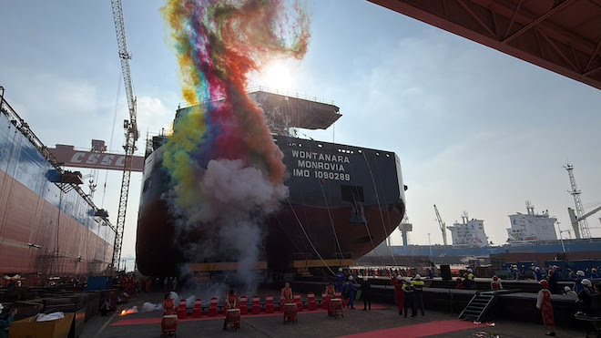 Yangzhou, Chine – La coentreprise SimFer annonce aujourd’hui le lancement réussi de son premier navire de transbordement (Transshipment Shuttle Vessel – TSV), spécialement conçu pour transférer le minerai de fer en eaux peu profondes, du quai vers les navires océaniques. Le lancement a eu lieu au chantier naval de Chengxi.