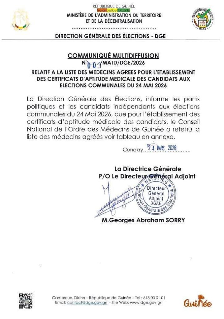Tags: Candidatures électorales : la DGE encadre la délivrance des certificats médicaux